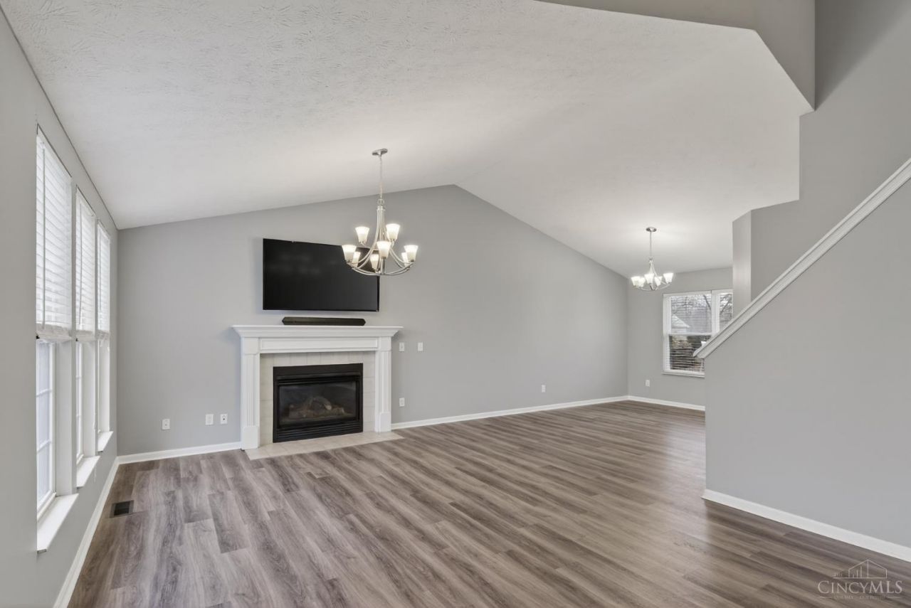 This beautifully appointed home features luxury vinyl flooring throughout and a gourmet kitchen equipped with stainless steel appliances. The first-floor primary suite offers comfort and privacy. Soaring cathedral ceilings and a gas fireplace create a warm, inviting atmosphere. Step outside to an incredible yard with a spacious deck, easy patio access, and a charming fire pit area. A finished lower level adds even more versatile space. Ideally situated in a convenient location close to shopping, dining, and everyday essentials.